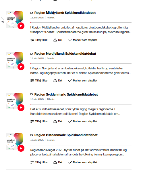 For hver kommune er region er der lavet en podcast, der varer en god halv time. I podcasten deltager de lokale spidskandidater, så man kan blive klogere på, hvad de står for.